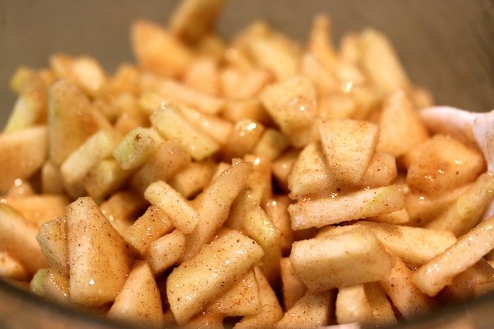 1. Slice apples into tiny cubes. Place in a bowl.